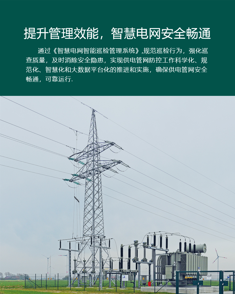 通過《智慧電網GPS巡檢管理系統》,規范巡回檢查行為,強化巡查質量,實現供電管網防控工作科學化、規范化、智慧化和大數據平臺化的推進和實施,確保供電官網安全暢通。