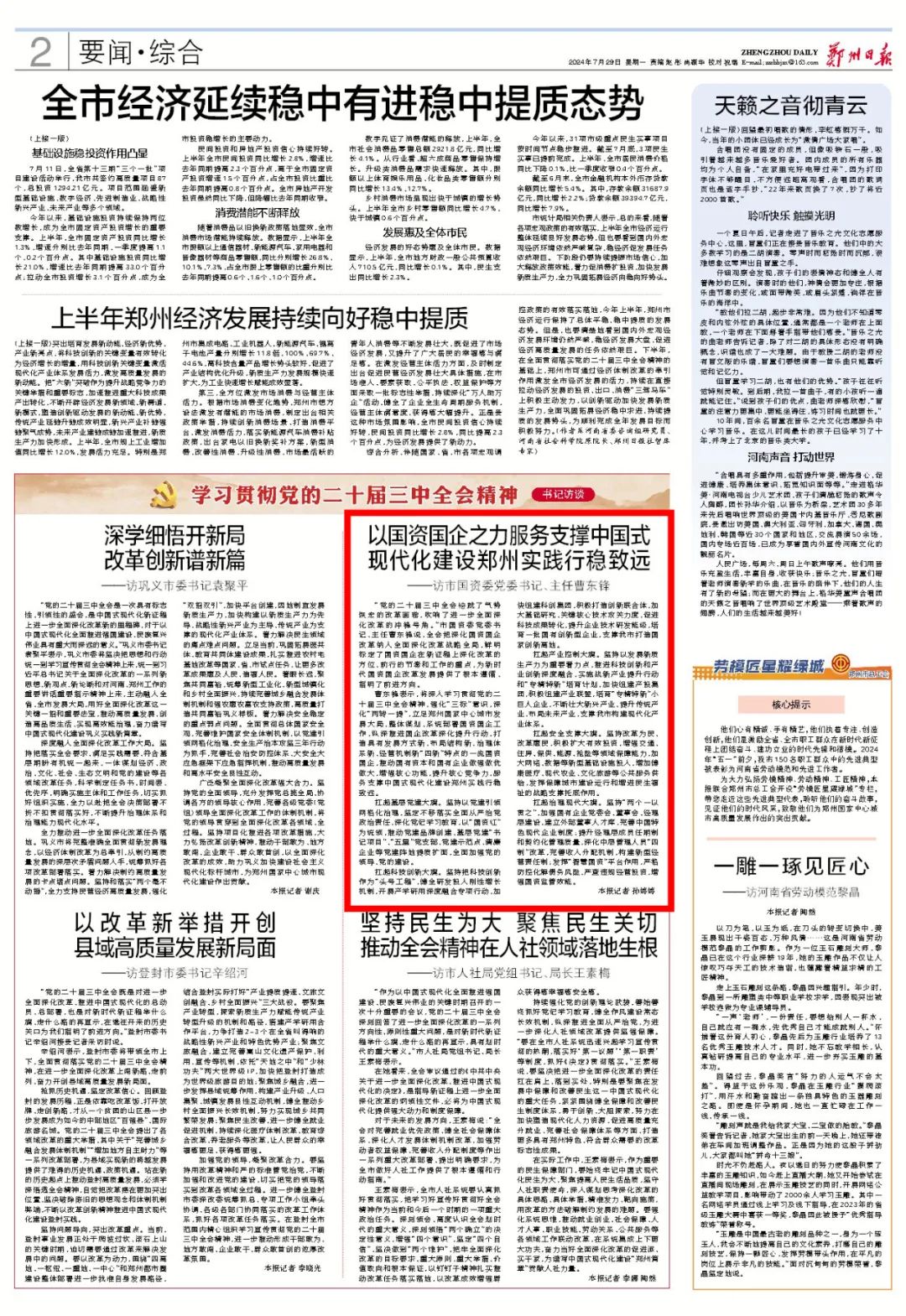 以國資國企之力服務支撐中國式現代化建設鄭州實踐行穩致遠