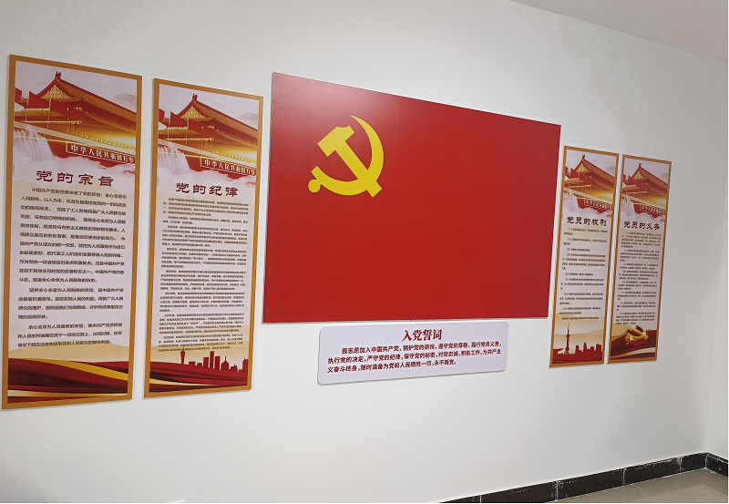 文化墻內容包括黨的一大到二十大黨史、四個意識、四個自信、兩個維護、黨員干部職工風采、黨建品牌、黨務公開、黨員示范崗等內容,陣地建設的打造,不僅宣傳了黨建知識、展現了黨員形象,還涵蓋了當前黨建工作的重點內容,將黨建品牌上墻,可以很直觀的看到黨建深度融入生產經營工作取得的實效性做法,可以讓職工群眾更深刻直觀的了解黨員先進形象,同時不斷激勵黨員創先爭優、爭做模范,進一步提升了黨建的文化內涵,使廣大黨員群眾在潛移默化中了解、支持、深化黨建工作,不斷提升黨建活力,發揮黨建引領作用。